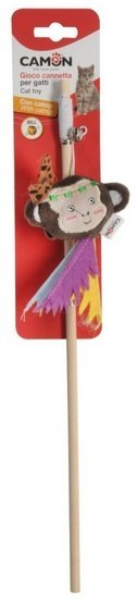Camon Cat Toy Wędka drewniana z dzwonkiem i kocimiętką indian