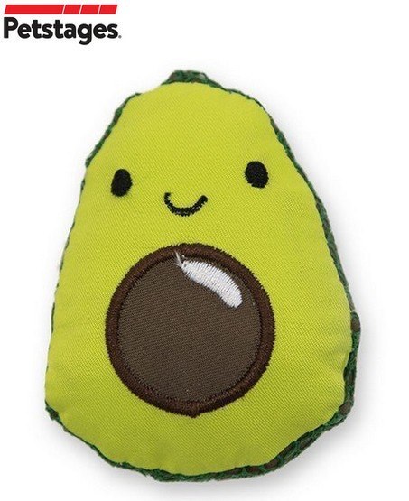 Lil' Avocato to zabawka z materiałem siatkowym, który pomaga w czyszczeniu zębów kotka podczas żucia.