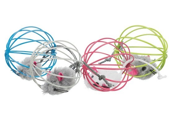 Zabawka dla kota - pluszowa myszka w drucianej piłce. Zabawka zawiera dzwoneczek. Średnica 6 cm Kolor losowy Opakowanie zbiorcze zawiera 24 sztuki.