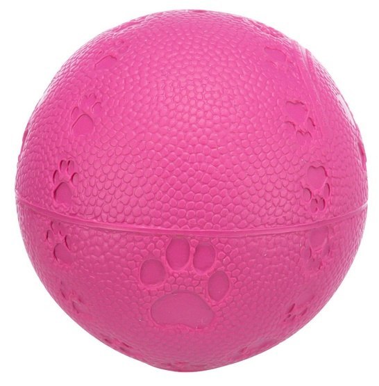 Zabawka dla psa Piłka wykonana z naturalnego kauczuku. Idealna dla aktywnych psów Wydaje dźwięki Wytłoczony motyw łapek Kolor wysyłamy losowy