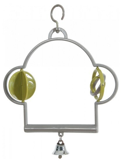 Plastikowa huśtawka z zabawkami i dzwoneczkiem to idealny dodatek do klatki dla ptaków. Dwa kolorowe, wirujące elementy umieszczone na jej bokach dostarczą zwierzęciu stymulacji intelektualnej oraz zapewnią dużo rozrywki, a także urozmaicą przestrzeń klatki.